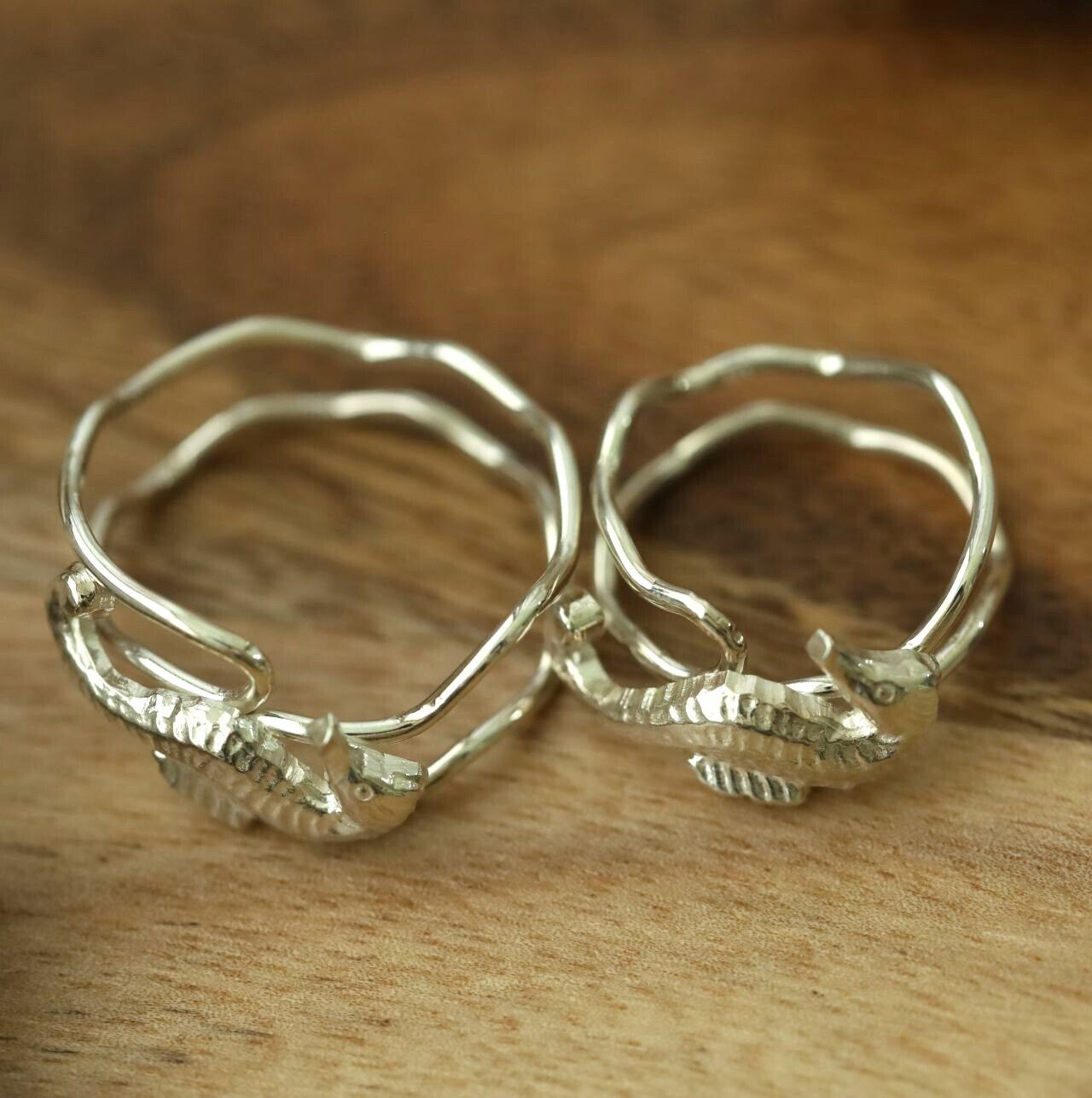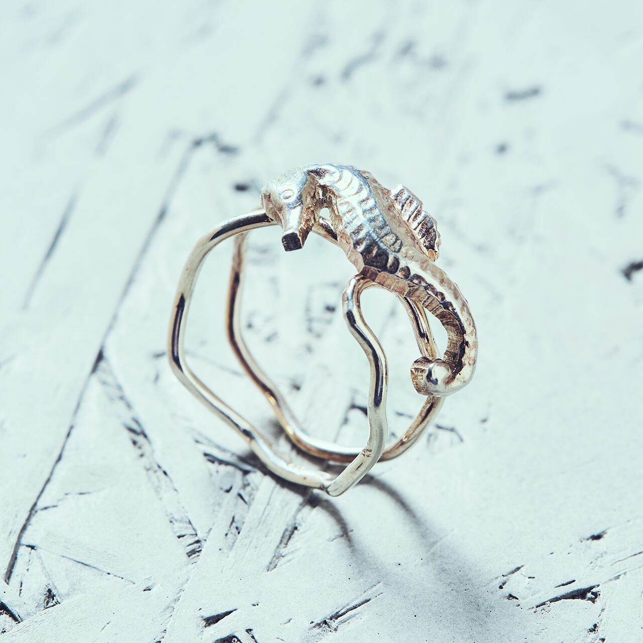 タツノオトシゴが水中を漂う様を表したシルバーリングです。