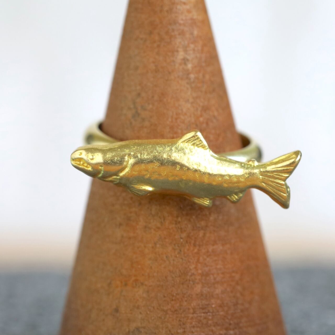 サーモンをモチーフにした真鍮リングです。